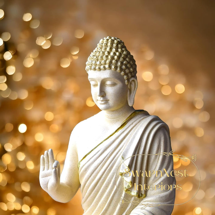 Additional Feature : Enlightening our surroundings, Decorating HomeEnhance the elegance of your home with this Beautiful Sitting Buddha Idol Statue! Its refined design brings a luxurious touch to your decor and creates a warm and romantic ambiance with the addition of tea lights. Perfect for any interior space, it's a must-have for adding a sophisticated charm and positive vibes to your living area, bedroom, or office.