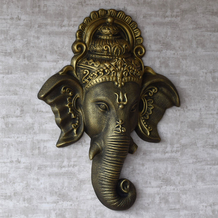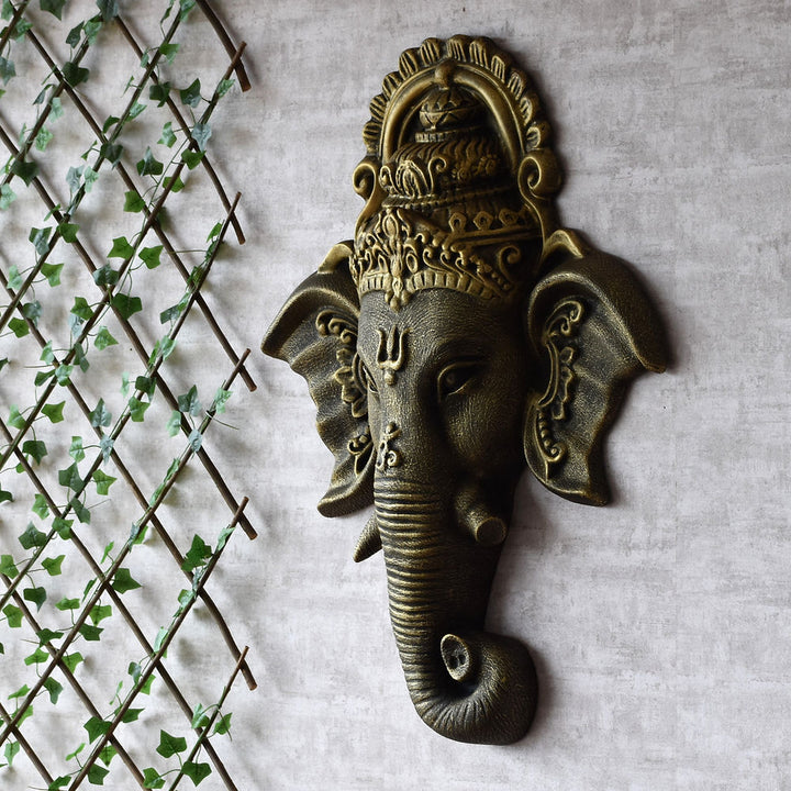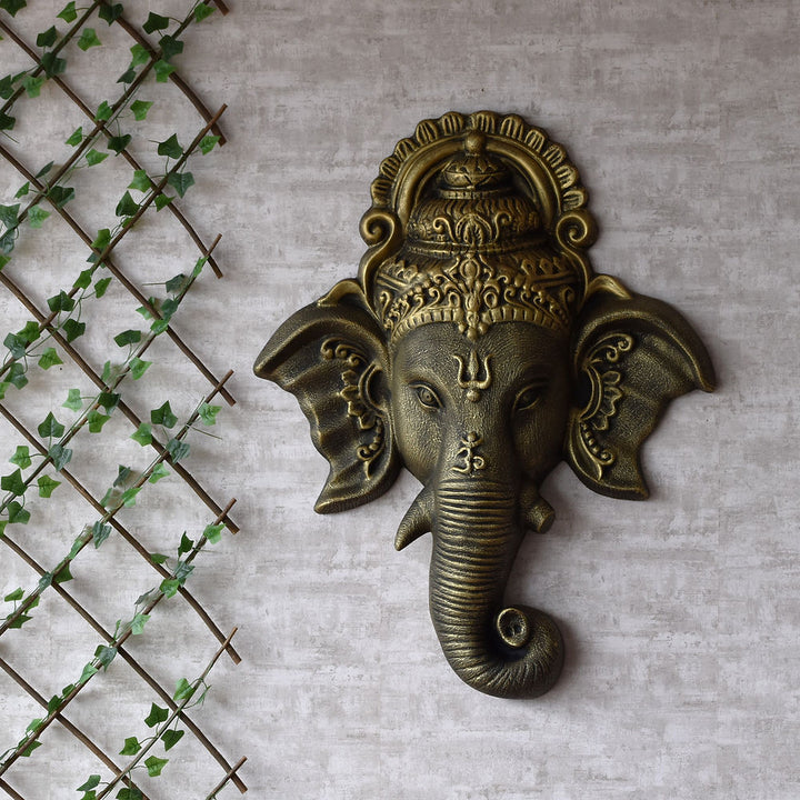 Ganesha Face Wall Green Antique