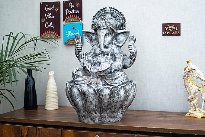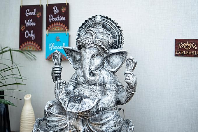 Ganesha Fountain 2 feet Sculpture Silver Grey