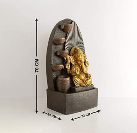 Swarnhouse Decorative Water Fountain with LED Light, 2 Feet, Indoor Tabletop Waterfall for Home Office Garden Article Ganesha